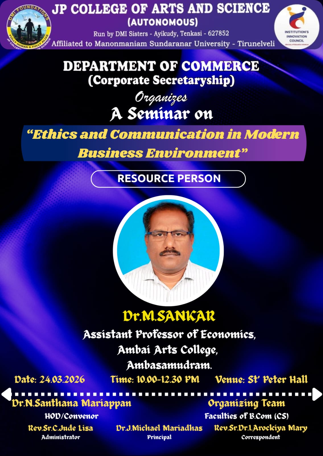 A Seminar on Ethics and Communication in Modern Business Environment Organizes by Department of Commerce (CS)