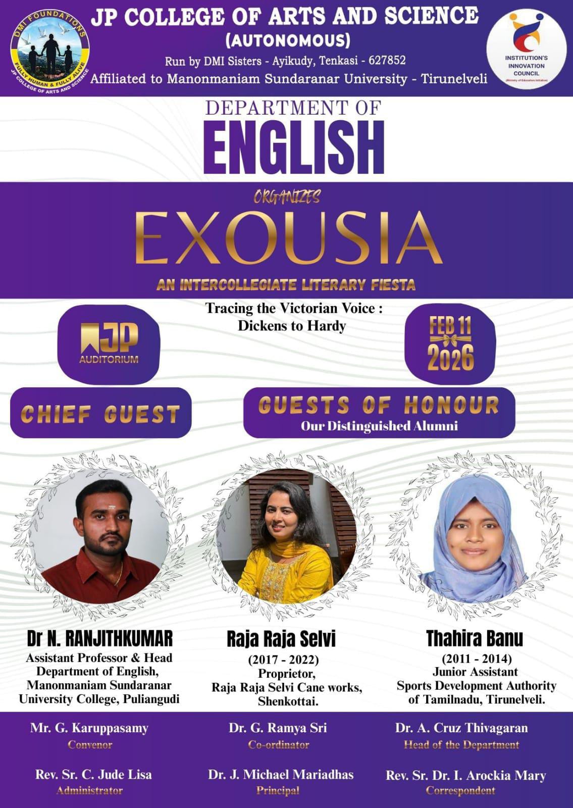 Department of English Organizes by EXOUSIA An Intercollegiate Literary Fiesta