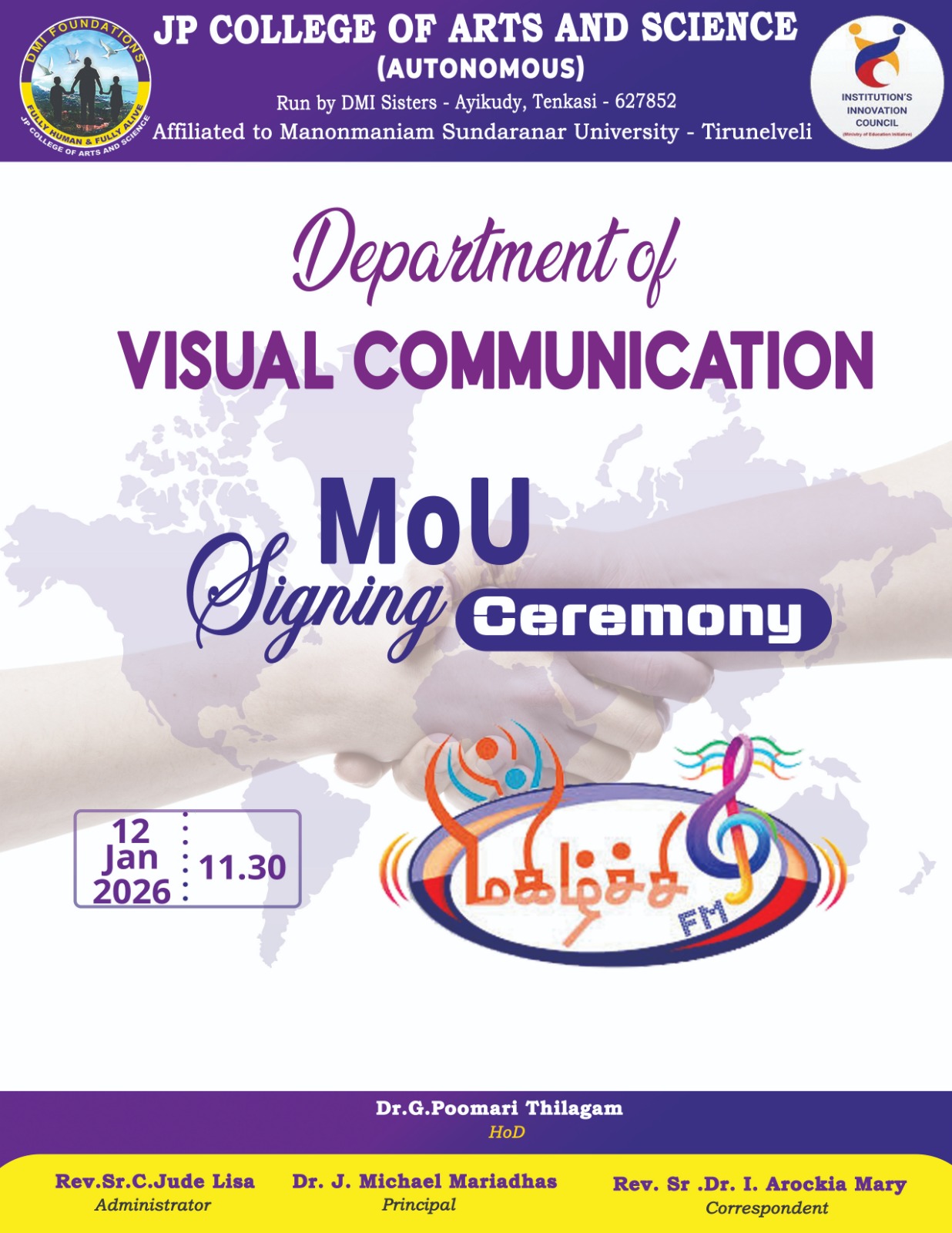 MOU Signing Ceremony with மகிழ்ச்சி Organizes by Department of Visual Communication