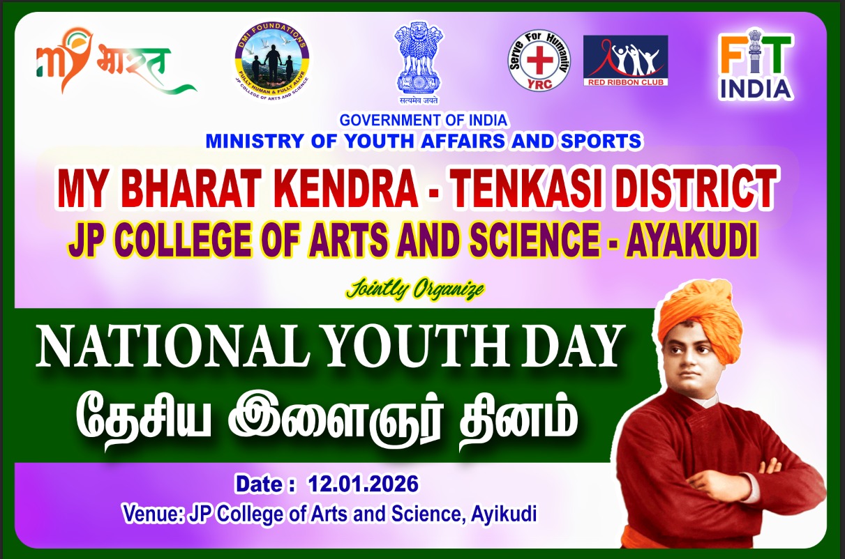 NATIONAL YOUTH DAY Jointly Organizes By My Bharat Kendra – Tenkasi & JP College of Arts & Science – Ayikudi