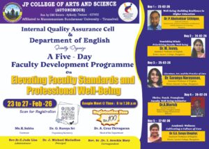 A Five Days Faculty Development Programme on Elevating Faculty Standards and Professional Well Being Jointly Organizes by IQAC & Department of English
