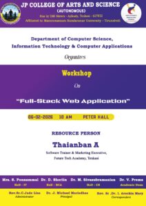 Workshop on Full Stack Web Application Organizes by Department of Computer Science,Computer Applications,Information Technology